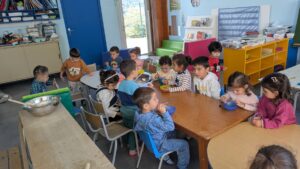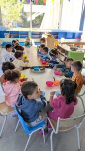 Pour ce dernier jour d’école de l’année, le Père Noël nous a rendu visite et nous avons fêté les anniversaires du mois de décembre lors d’un grand goûter tous ensemble ! Enfin presque !! Il y avait beaucoup d’absents 🥺