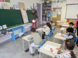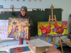 Nous avons accueilli l’artiste Bénédicte Serre pour notre projet « Les portraits et les papiers font le tour du monde ».