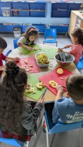 Pour fêter l’anniversaire de Nisa, nous avons cuisiné de la compote de pommes.